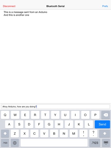 Basically this app sends data (ASCII characters) to the HM10 and displays received messages. Optionally a carriage return or line break (or both) can be added to the end of the message.