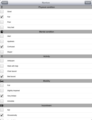 Attendo un ulteriore aggiornamento per le altre scale molto utilizzate Kats ADL,CIRS,SPMSQ,KARNOSKY,IDS,GIC,MMSE, MNA .....e poi e perfetta