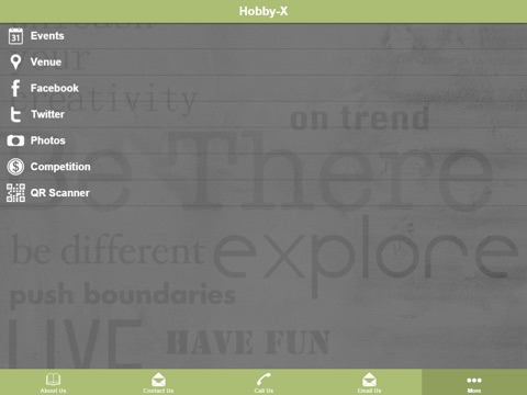 About Us, Contact Us, Venue, Events, Facebook, Twitter, Video, Photos, Competition, Exhibitors and the Agenda.