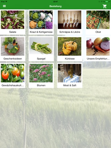 Im Menüpunkt Bestellung finden Sie all unsere aktuellen Produkte. Wählen Sie Ihre gewünschten Artikel und klicken Sie zur Bestätigung auf den Warenkorb.