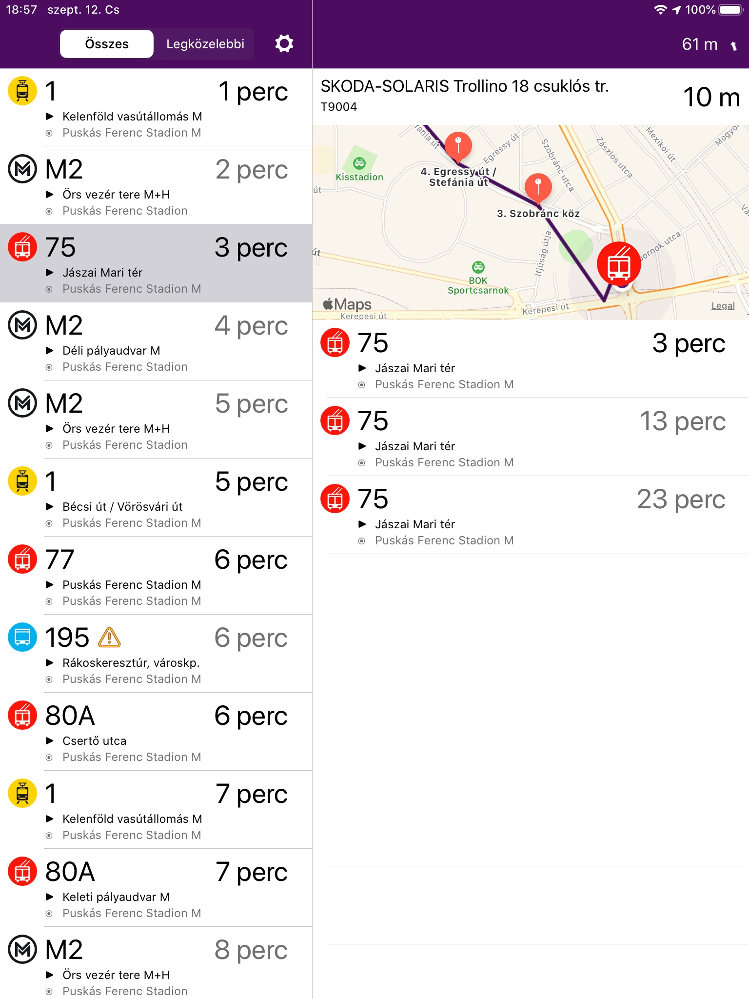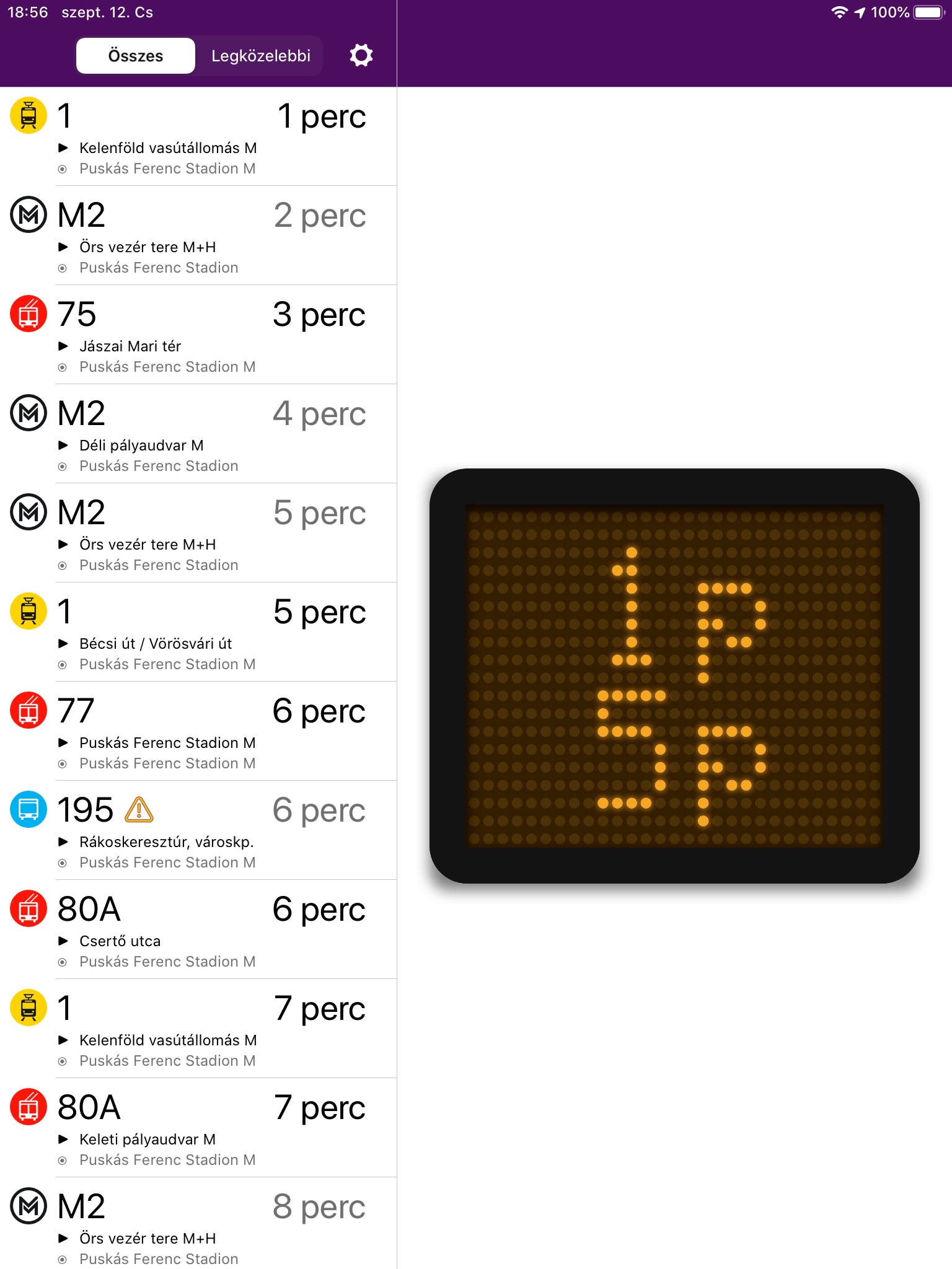 Egy összesített listában láthatod, az aktuális helyzetedből elérhető megállók indulási idejét.