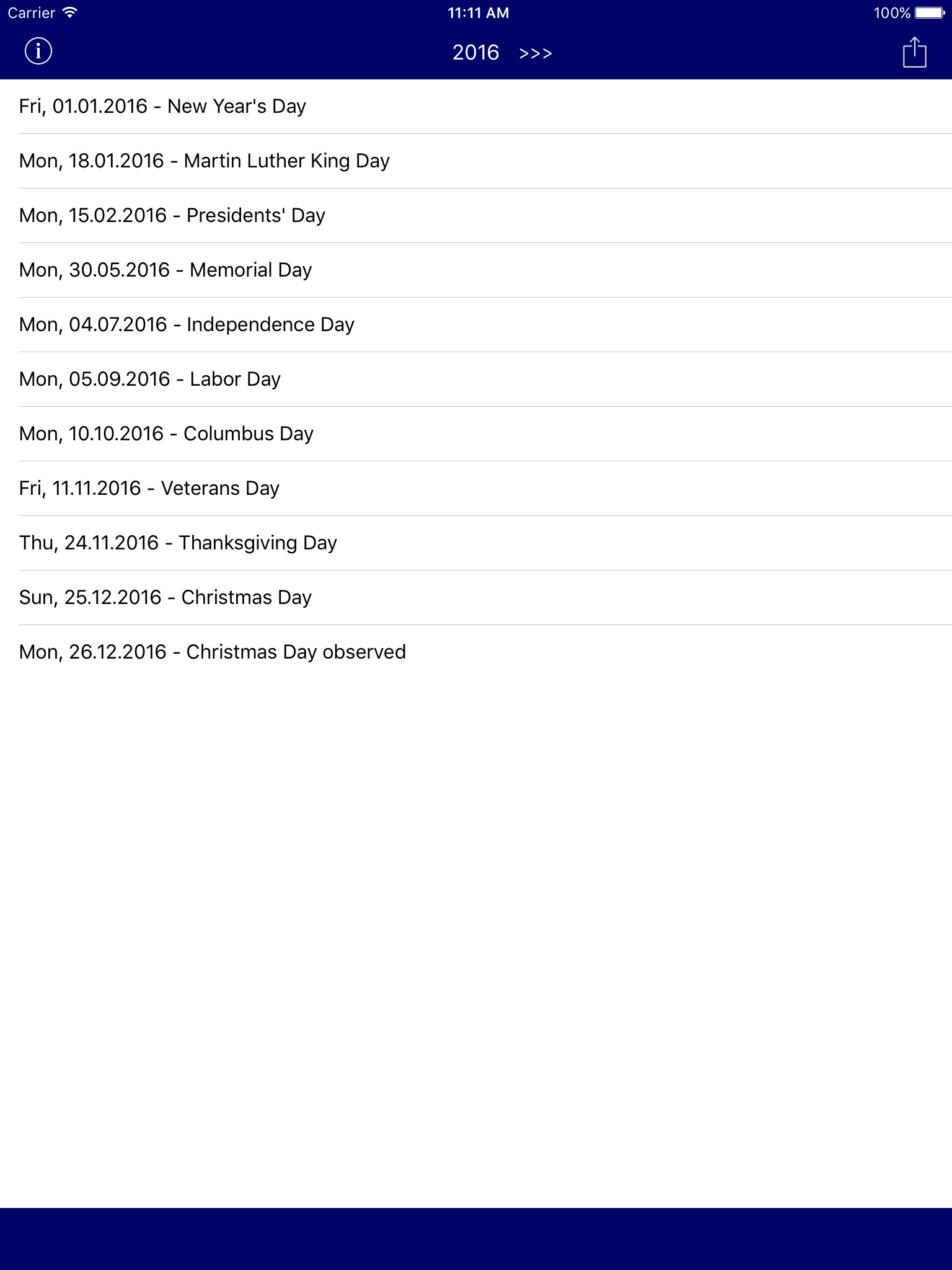 Holiday Calendar USA 2016 - Federal Public US Holidays for Vacation and free time Planning at Mac App Store analyse