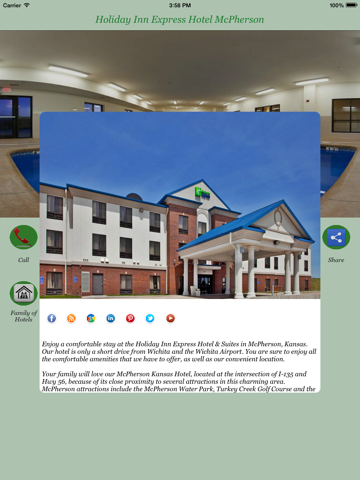 Book Holiday Inn Express Hotel McPherson quicker and easier than ever before. With the hotel’s app powered by BingoTravel Apps, connecting with this property directly and simply has never been more convenient. Do everything you need on your smart phone! This single property app lets you take a look at hotel features and amenities and glimpse useful photos -- anytime you want. And of course, you can book directly with this powerful application. Even better, do things around the clock without waiting on hold or dealing with a call center. To connect with this hotel now, download this app.