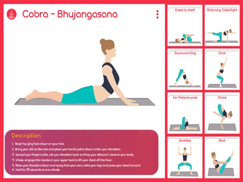 Choose between different sessions of varying duration and difficulty. Learn the poses with the pose dictionary containing detailed explanations of the correct posture, alignment, and benefits.