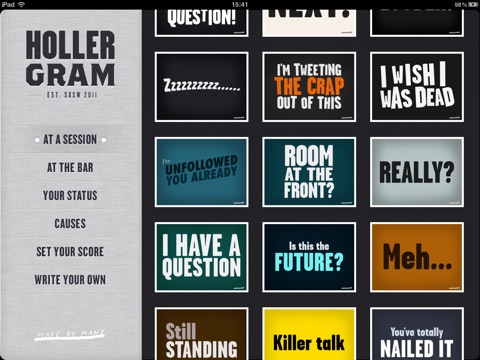 After downloading Holler Gram for iPhone, why not get Holler Gram for iPad? Follow its creators Made by Many on Instagram (username: madebymany) to see the pick of the Holler Grams being shared right now.