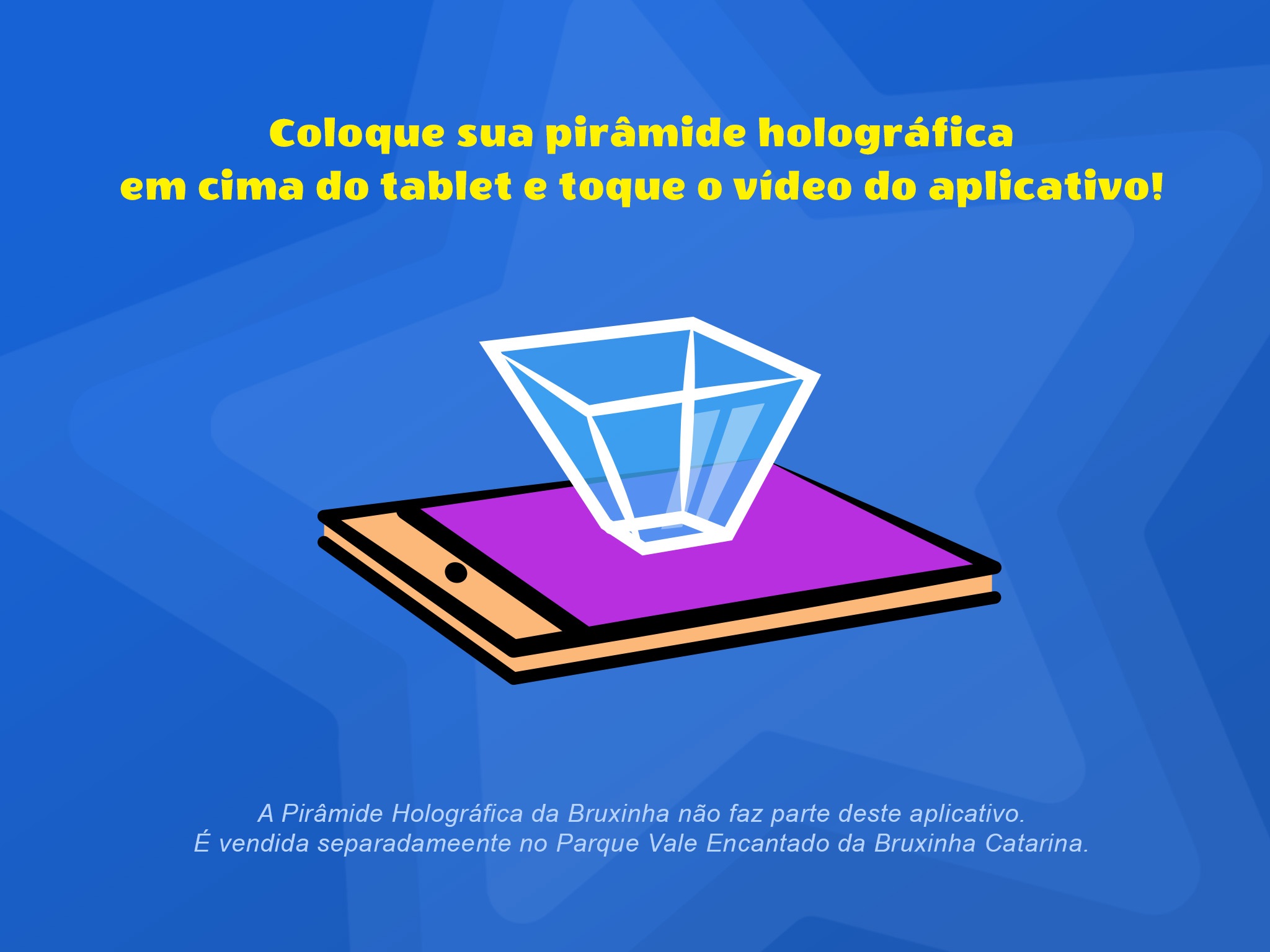 Agora você pode ver hologramas da Bruxinha Catarina em seu celular! Você só precisa colocar uma Pirâmide Holográfica em cima do celular e tocar um dos vídeos do aplicativo e pronto: a imagem em 3D aparece projetada na pirâmide como mágica.