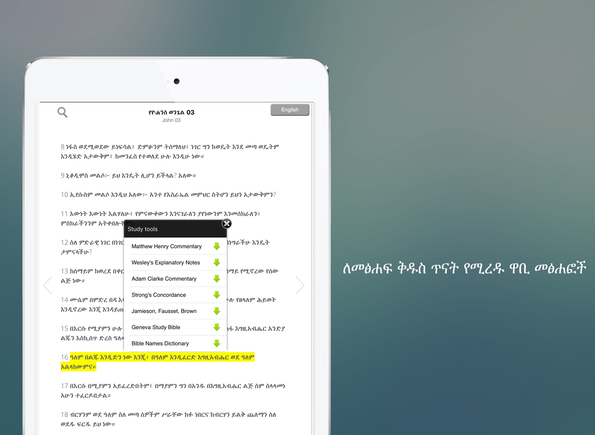1.No Option to take notes with amharic Phons. 2.unable colour shading of verses as it was advertised. 3.it World have been more useful if it was the New Standard Version as it has been simplified and better Delfinen. Thank you for such Hard work and God Bless you.