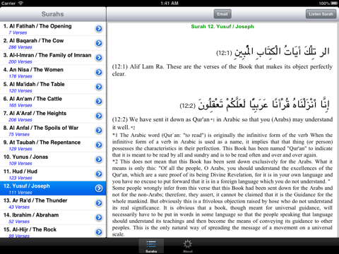 - Complete Quran arabic text and detailed English translation