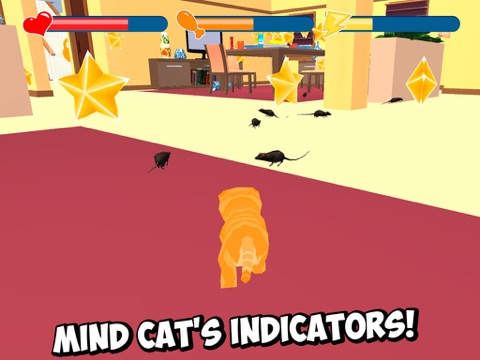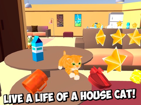 Feel yourself like a little pussy cat and do what kitten does: discover the home, play with humans and items at home, make a mess or just jump over the furniture. Explore huge house full of secrets (and items to crash, of course) and show what real cat rampage is! Earn points destroying things, hunting for mice and misbehaving and unlock new rooms! Don’t forget to mind indicators - find food or hunt mice to make it your next meal with this kitten simulator. If one of indicators decays the zero – there is no chance to survive! Try yourself being a little cute cat making fun of crashing things! It’s not like playing survival simulators, enjoy the pet life!