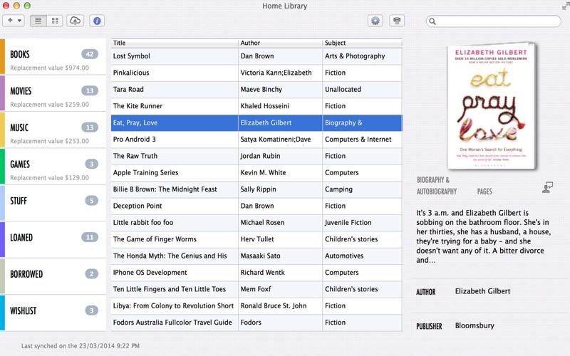 Home Library easily maintains your personal collection of books, CDs and DVDs. Add items quickly. Intelligent search engine and intuitive screens layouts allows you to record your valuables in seconds. Print and export data reports in PDF and CSV formats.
