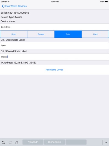 Wemo devices can be assigned a type, including doors, gates, garages, and lights.