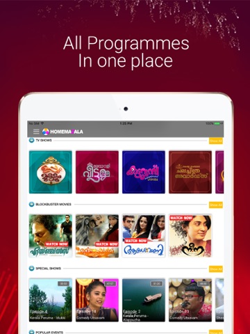 Download the free App to instantly watch Live TV and recorded shows of all Malayalam channels. As the application is in trial phase, we are providing only limited tv channels like flowers , media one, powervision, shalom , mathrubhumi , safari tv and reporter tv. Other channels will come on board soon.Recorded contents of flowers tv are also available in the TV shows.The full length episode of Uppum Mulakum , the daily comedy serial of Flowers TV will be updated to this application. Comedy Supernite and Comedy Utsavam , the other two popular shows are also uploaded to HOMEMAZALA every day. The contents are uploaded based on genere, which will help the users to search and enjoy the contents of your taste.