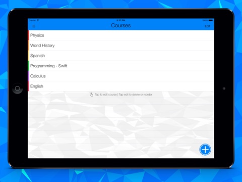 • Intelligent course entering: Courses can be added in any order at any time and reordered to match your schedule. The order set on the courses page will determine the order that they appear in when adding or editing an assignment.