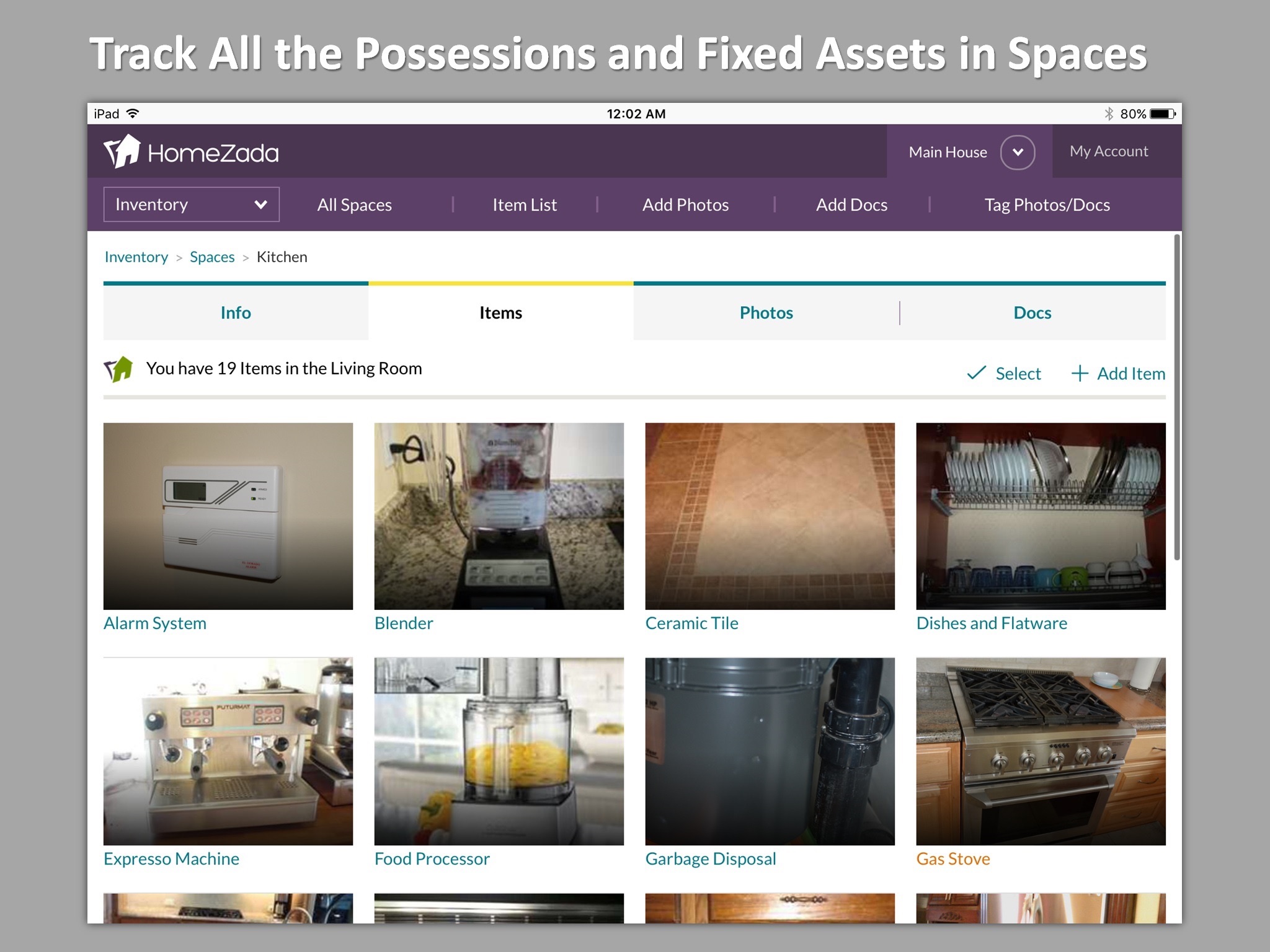 HomeZada is an easy home inventory app that helps you make sure you are properly insured, provides peace of mind in case something happened to your home, you are ready to manage a moving list in case you move, and it helps you identify all the equipment, appliances, fixtures and building materials in your home that need to be maintained.