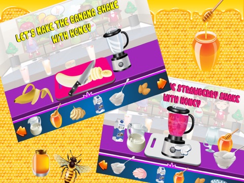 Make tons of delicious and mouthwatering desserts in the sweet shop with the pure honey, serve your customers with awesome honey delightness, excite your customers with honey strawberry milkshake maker frozen dessert topped with awesome fruity flavors & toppings like strawberry, banana, mangoes and many more, make honey ice cream with awesome delicious toppings and honey sweet cake & honey shortcake enjoy the whole process of making & cooking ice cream and topping it in real chef simulation café kitchen environment. Also learn to bake the cake the honey cake and top it with honey bee designs.