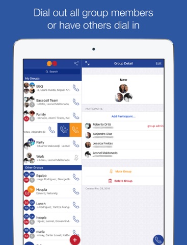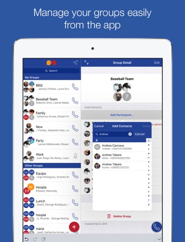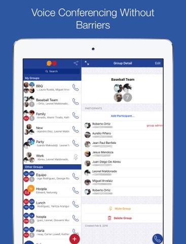Talking with your friends, family or colleagues is just a click away and whats even better, theres no need for others in your groups to install the app. Traditional conference calls are complicated because they involve inviting participants, dialing a PIN and waiting for the organizer to join before starting, but Hoopla Group Calls shake up this notion by taking advantage of groups that are predefined by you. Once you create a group, you can talk to your group as many times as you want by just clicking the group call button and making a regular phone call to a telephone number.