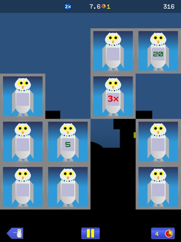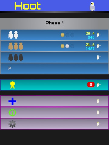 Hoot has 20 levels split into five phases of robo-owls, each with their own unique challenge. Play for maximum points or play for fastest time, or both simultaneously! See how many coveted gold stopwatches you can earn.