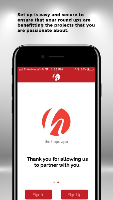 The Hope App is a generosity app. Simply put, it allows you to take your change--you know, the pennies, nickels and dimes you walk over on the sidewalk--and turn it into a powerful tool that brings hope to others. The Hope App partners with you and your favorite non-profit. We round up your transactions to the nearest dollar and send the money to your trusted and reliable non-profit. We also support one-time and recurring gifts!