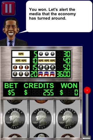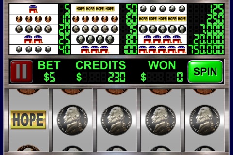 Think the mainstream press is fair and balanced? Tired of all the politics? You can still enjoy the fun. Rotate the device at any time to get a 5 reel slot machine that focuses on the slots and not the politics.