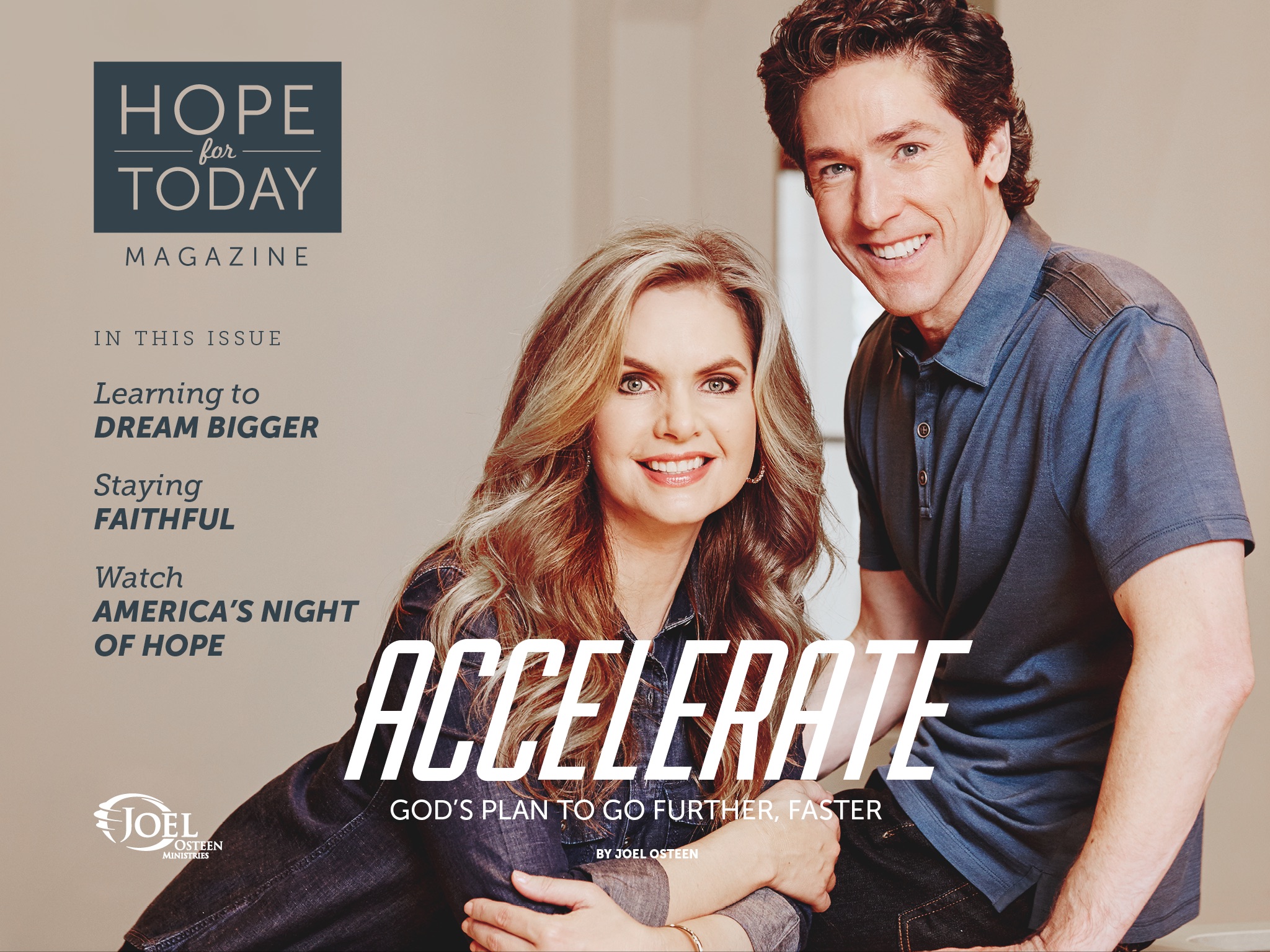 Enjoy Hope For Today, the inspirational digital magazine from Joel Osteen Ministries. Filled with articles and insights from Joel, Victoria and more, this uplifting magazine will encourage you to receive Gods favor in every part of your life.