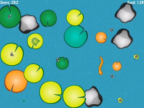Hopping Frog is a fun and simple game for everyone, including young players. Just tap on a nearby lily pad to jump from one to another. You will get 2 points of score for each jump. You may also jump onto a rock to stay, but it will cost 10 points of food every second. Instead, jumping on a lily pad which has a bug will gain 10 points of food. If you fall into water or run out of food, the game is over. See how much score you can get!