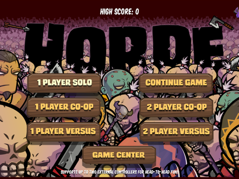 Horde can be played solo, with a friend, with the CPU as your teammate, or in versus mode, with larger side scrolling levels to go head-to-head against with the computer or your buddies.
