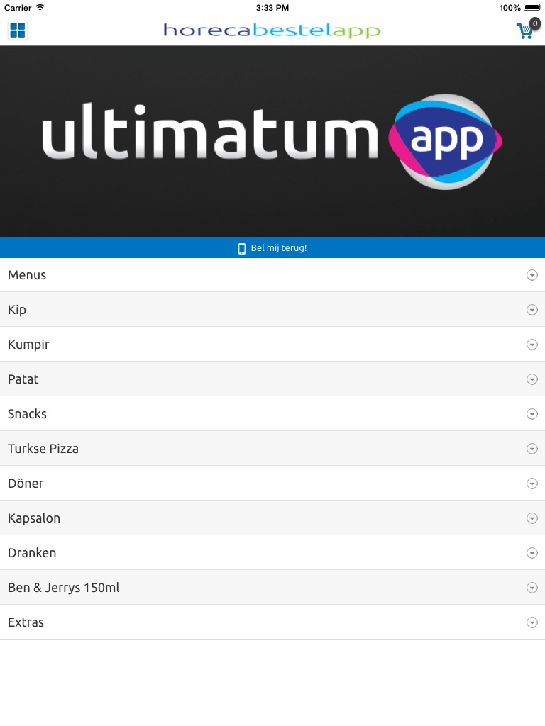 Demo applicatie van de Horeca Bestel App. Wilt u ook een mobiele applicatie voor uw Horeca zaak, ga dan naar www.horecabestelapp.nl