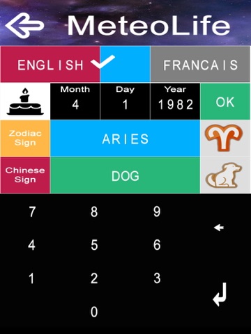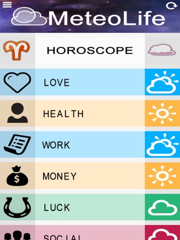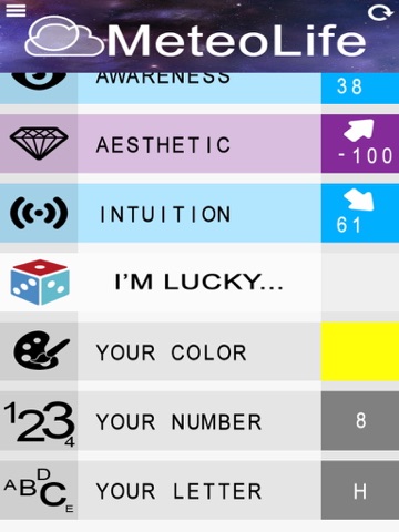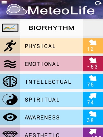"MeteoLife" is the only application that provides a synthetic vision for your astrological and biorhythm informations.