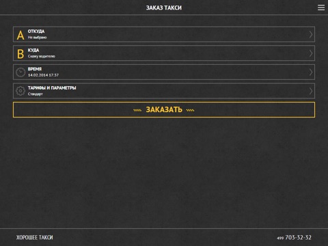 - быстрый заказ такси по двум полям "Откуда" забрать и Номеру телефона