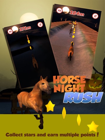 Guide your horse in the dark by pressing up to jump, left and right to avoid Tombstones, Trees and zombies. Collect as many stars as you can and travel the farthest in this endless running game. Play with friends beating each others’ high score.