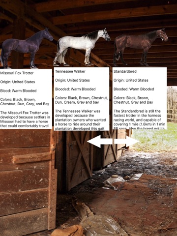 Horse-a-Pedia is an app where anyone can learn new information about horses. There are multiple buttons that will pop up information about anything a person would like to know about horses. The screens for my app are a horse diseases screen, horse videos screen, and a poisonous plant screen. Some other cool features from my app are this amazing horse sound on the home page and button arrows that go to the next page and a home button.