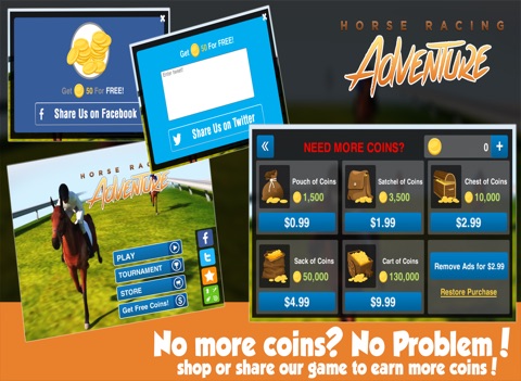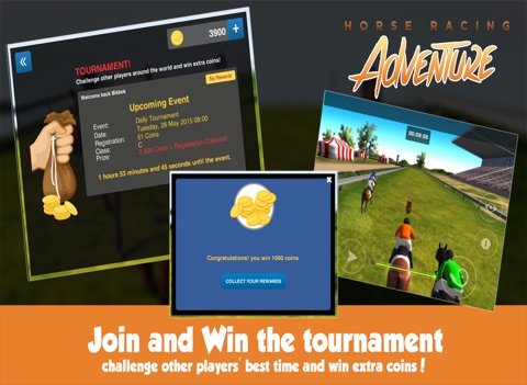 Everyday we have a tournament, Join the tournament and compete on the higher post and earn your prize everyday! Compete with other players around the world, make your horse be the number 1 on the world and make them popular!