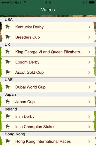 More than 300 exciting videos of horse racing! This is an application with many great videos and photos of various race such as Kentucky Derby, Breeders Cup, Ascot Gold Cup, Dubai WorldCup, Prix de lArc de Triomphe etc.