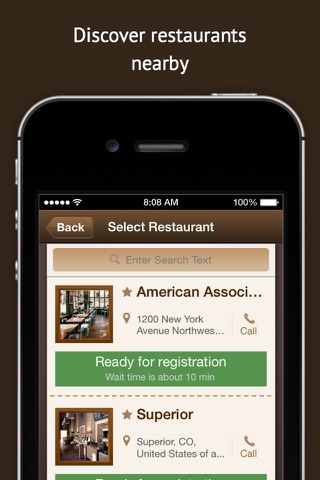 - Free and instant updates on your waiting list status sent directly to your phone, giving you the freedom to go shopping, wait at home or enjoy other activities instead of just waiting in close proximity of the host stand.