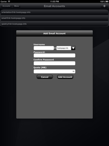 • Manage Email Accounts (Create, View, Edit, Delete)