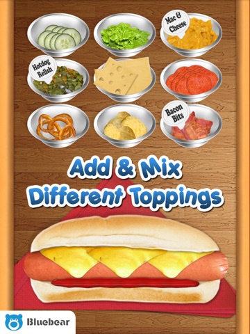 Hot Dog Maker! lets you make your own yummy Hot Dogs from scratch. You control everything, selecting bread, garnishing with sauces & adding toppings, making awesome combinations!