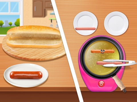 • Make hot dogs by picking your favorite ingredients for the fillings inside it by using fun tools.