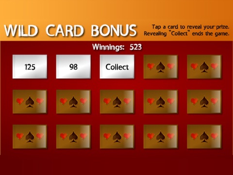 Wild Card Bonus: Am I being hustled?! 15 cards spread across the table. Tap a card to reveal its value. Continue to rack up credits until you reveal a ‘Collect’ symbol.