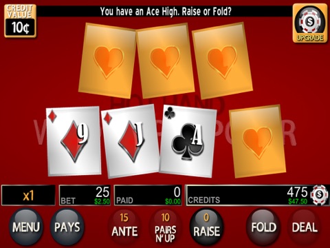 Swipe up for a max bet, or raise, if you’re feeling lucky. Swipe down to deal the initial hand, or fold after cards are dealt. Swipe right or left to toggle the credit values. Deal your way to earning all 70 achievements. Statistics feature keeps track of your gameplay. Some statistics include: win/loss ratio, total wins, total losses, biggest win on either credit value, bonus games played, and MORE! Any bonus card dealt triggers a bonus game.