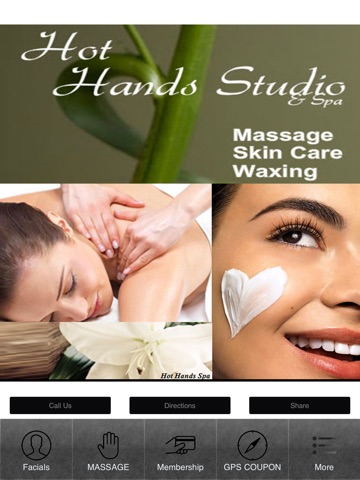 This app will help you get the most out of your Hot Hands Studio Message experience. From Enjoying facials or messages our app will help you take full advantage of all our services. Enjoy GPS and QR Code Coupons to receive promos as well as loyalty rewards. Book an appointment or buy gifts certificates.