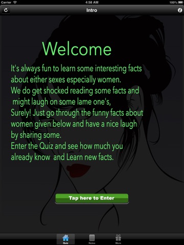 So Learn yourself Interesting and amazing facts about women and you will be shocked to know them in a Entertaining Trivia. Test your knowledge and Score yourself against your friends and family. As an added benefit, Notepad is built in this App to capture your answers and notes. You can play and pause background music.