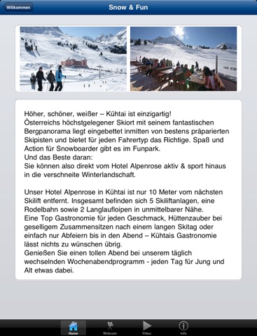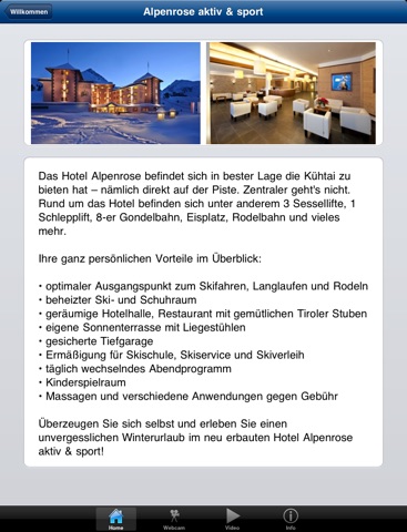 Laden Sie sich jetzt die ersten Eindrücke unseres Hotel Alpenrose in Kühtai direkt auf Ihr iPhone oder iPod touch. Folgende Features und Funktionen bietet Ihnen die Applikation: