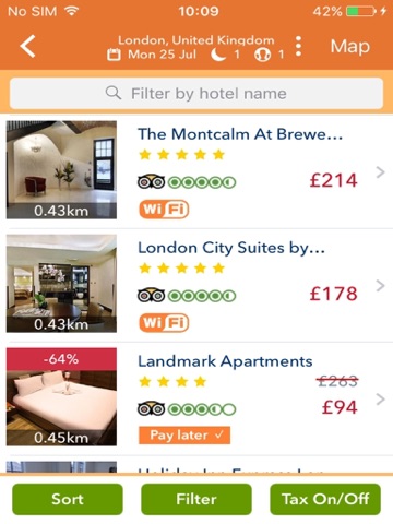 One search on HotelsOne will check the worlds biggest travel sites and hotels giving you access to over 200,000 hotels worldwide at the very best price. We’ve designed HotelsOne to make your life easy. When you’ve made your choice, you can book securely directly from the app in just 2 taps saving you time and money.