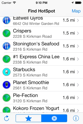 HotSpot Finder will locate nearby WiFi HotSpots and shows Yelp business information and reviews for each hotspot. Hotels, airports, restaurants and many other businesses offer free or paid wireless Internet access via hotspots. When planning your next holiday or business trip, use HotSpot Finder to locate hotspots on a map and get the Wi-Fi information needed to access them and complete reviews on each location.