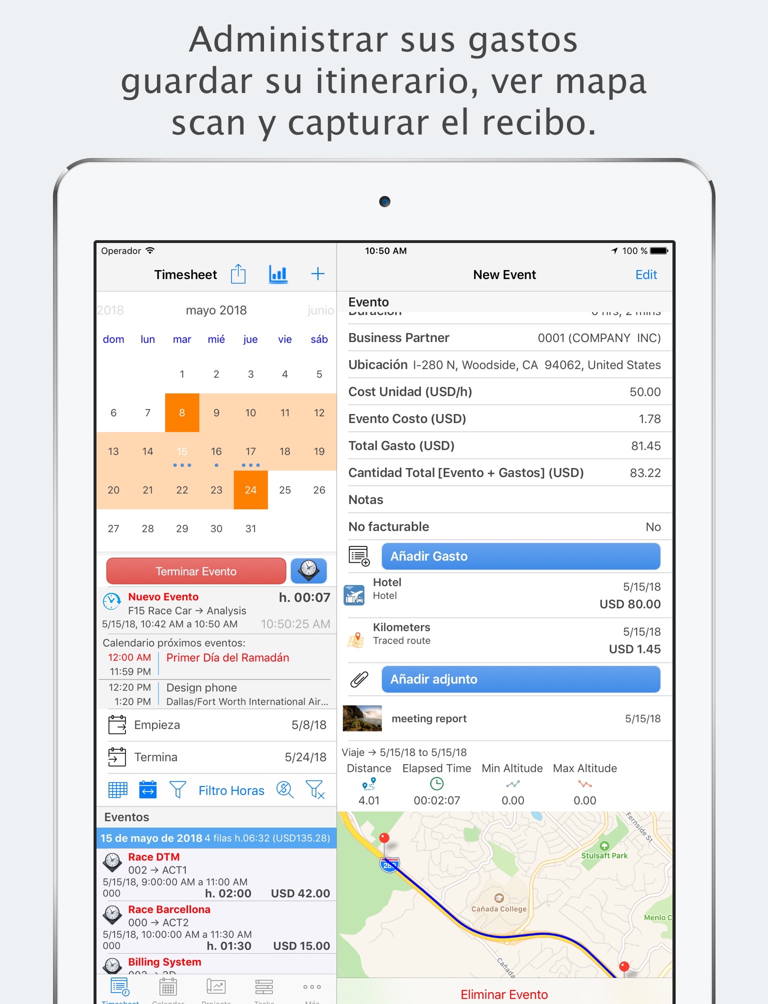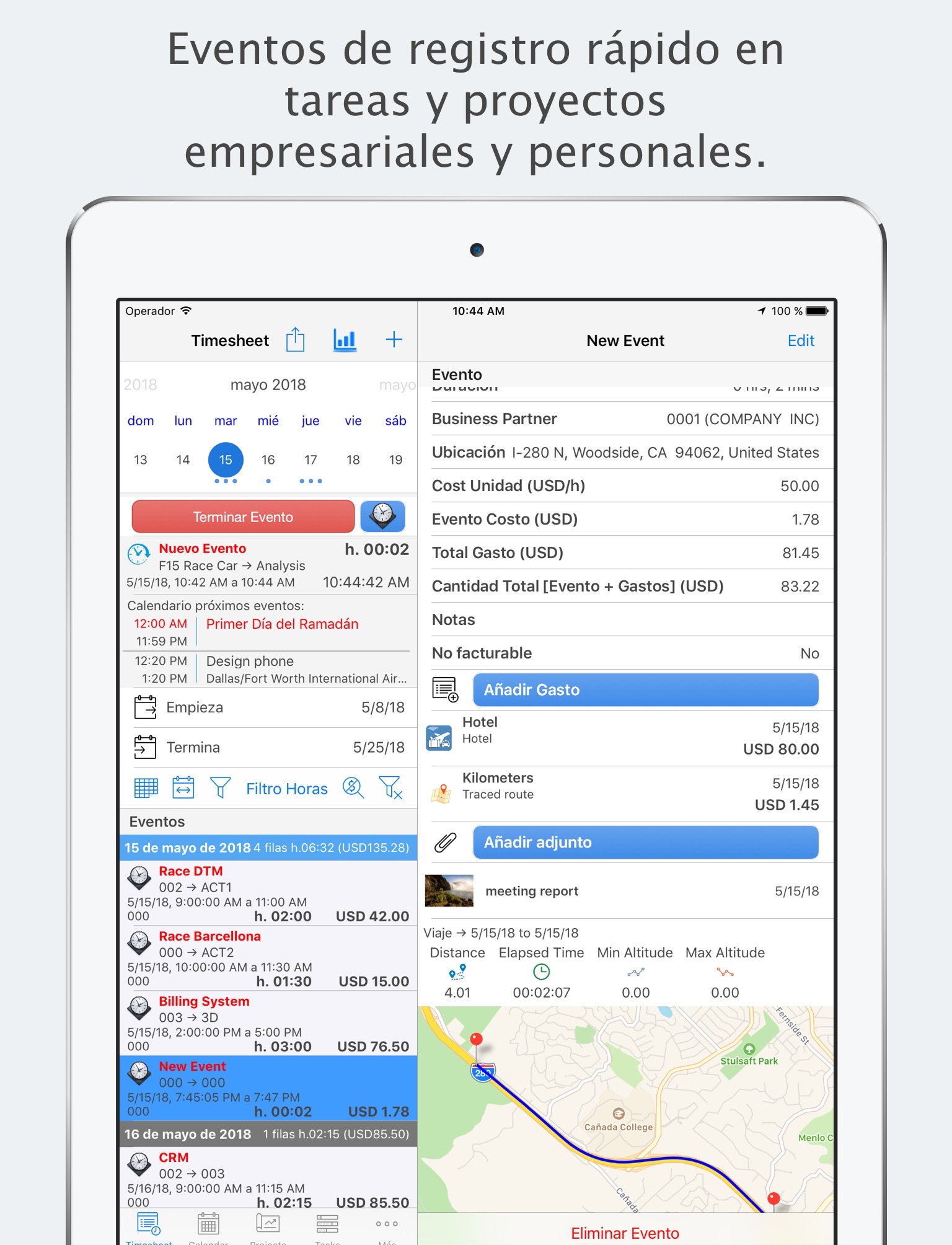 Organize your activities with report creation in Excel and PDF, charts generation, expenses management, automatic route-tracing, mileage and full integration with Apple Calendar.