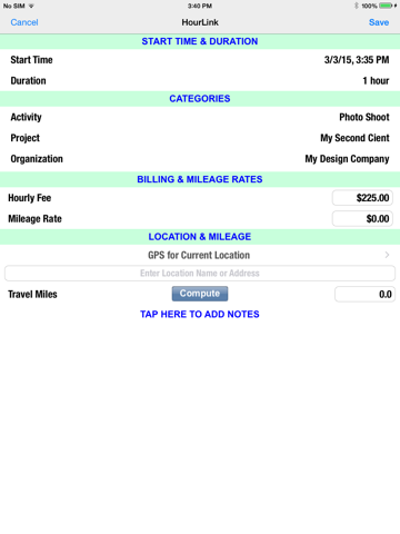 You can keep track of any fees that you bill for each time entry and view categorized summaries for each activity, project or organization that you define. The app has a GPS feature that computes the mileage between specified locations to determine your reimbursement for automobile mileage expenses.