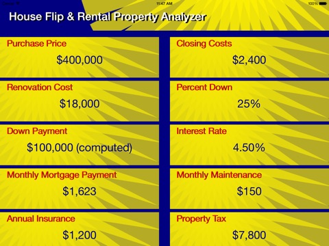 Whether you flip, rent or own, this is the best tool you can buy to understand cost and profit.
