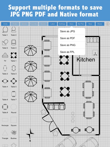 House plan is a powerful and simple floor plan/room design/house design tool, which allows you to design your house, home, room, apartment, kitchen, bathroom, bedroom, office, shops or classroom just on your iPad easily.