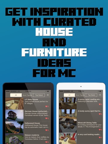 The Top House & Furniture Creations For Minecraft Now In One App! This app features house & furniture creations for Minecraft . Join thousands who enjoy new house & furniture creations, which are added each day! Explore to discover creative house & furniture builds, including exotic, swanky, gangster and posh builds. The house & furniture creations are constantly updated with complete with screenshots, blocks and other important info.