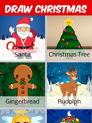 12 Christmas lessons. Learn to draw Santa, Rudolph, Angel, Christmas Tree, Gingerbread House, Gingerbread Man, Present, Stocking, Milk & Cookies, Elf, Nutcracker, Snowman.